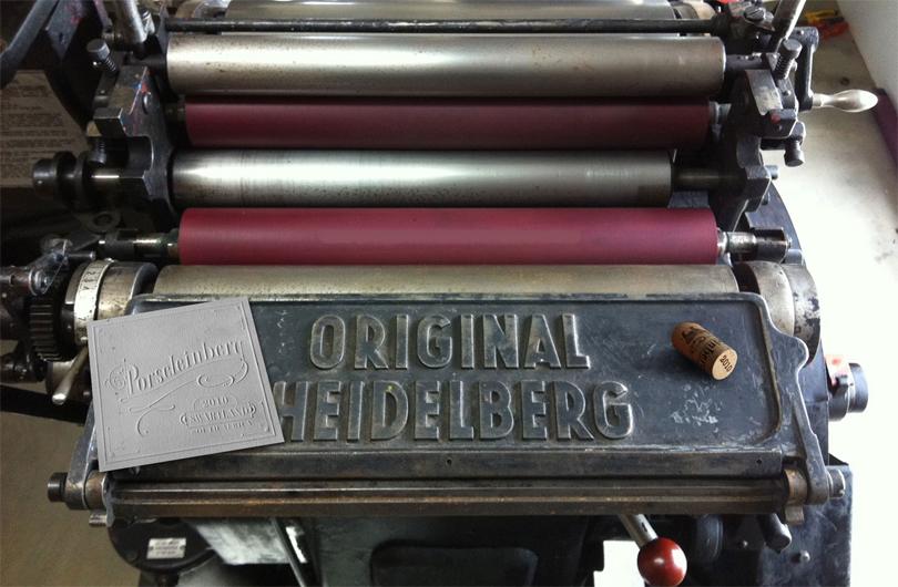 また当主のロウ氏は大変な拘り屋で、凹凸のあるエンボス加工が施された光沢のある純白のラベルは、ドイツのハイデルベルグ社製の約100年前の活版 印刷機を用いて自らが一枚一枚刻印したもので、磁器をイメージしてデザインされています。